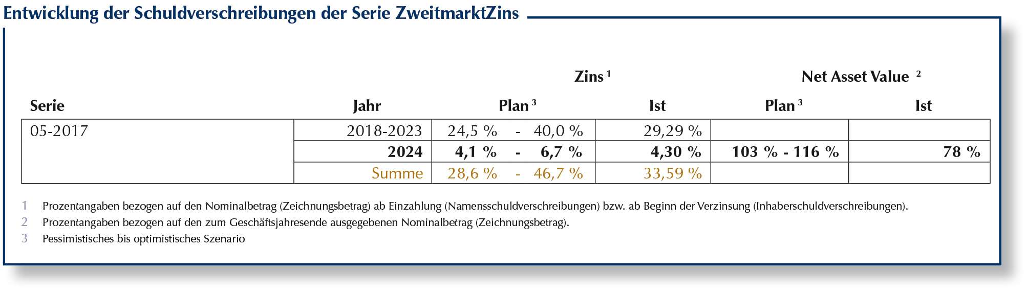 Die Entwicklung der Namensschuldverschreibungen stellt sich seit Emission wie folgt dar (aus Geschäftsbericht 2024):